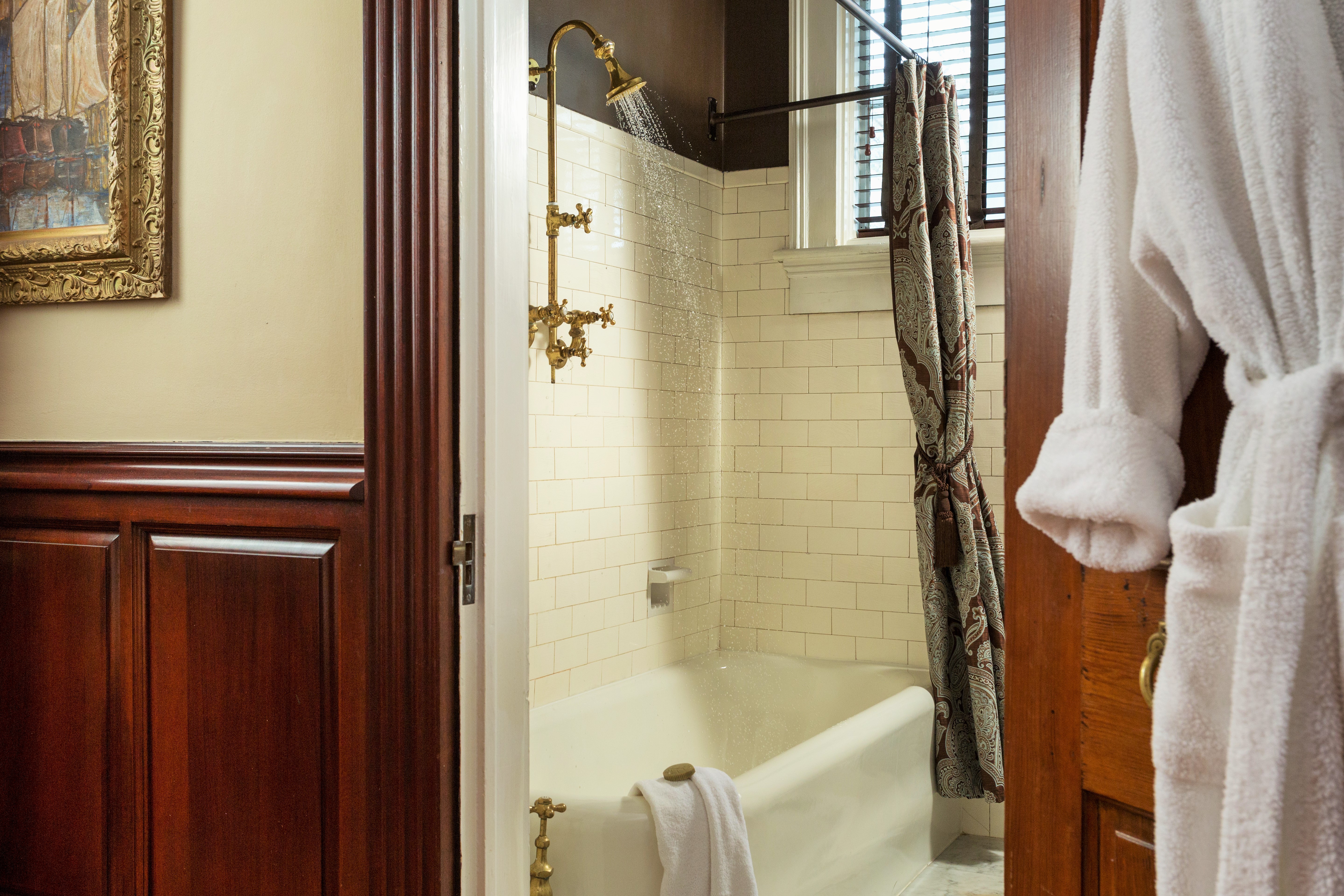 With original tile, tub and shower, the bath here can feel as if you’re stepping through time as you touch the antique fixtures. This room has one of the first baths added to the house in the late 1800s/early 1900s and care was taken to restore and preserve the original tile and fixtures. Everyone loves the pressure of the antique shower head!